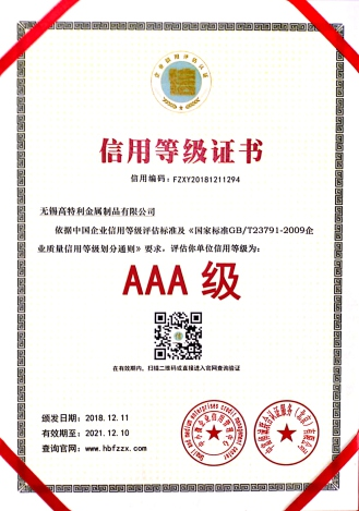 AAA credit rating certificate
